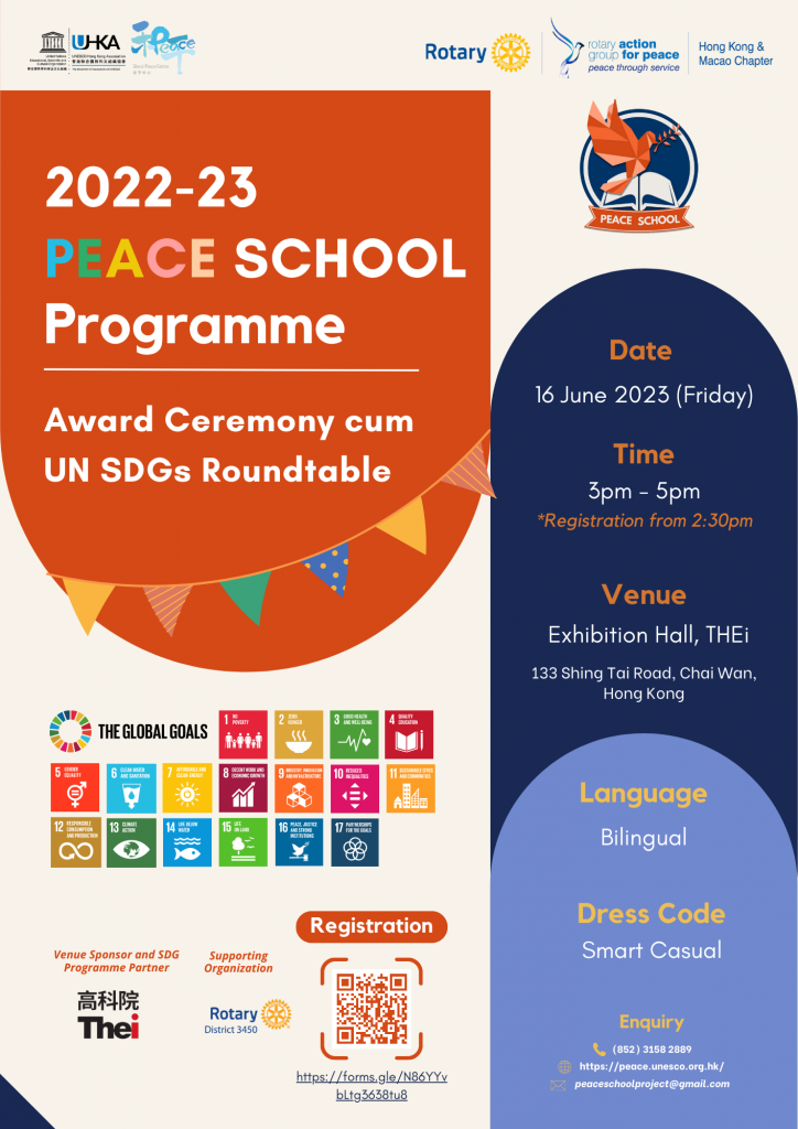 We are delighted to present you with 2022 – 2023 Peace School Programme Award Ceremony cum UN SDGs Roundtable. The event includes ceremony, keynote addresses, sharing and roundtable discussion.We hope to recognise the efforts of 2022-23 peace school participants and to explore opportunities of more direct association of SDGs goals and future mindset into the […]
